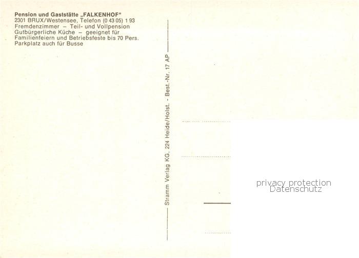 73763945 Brux Westensee Pension und Gaststaette Falkenhof Kegelbahn Zimmer postalisch nicht gelaufen Erhaltung siehe scans [FriedD77] KatCode: 11110001058171