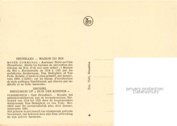73531701 Bruxelles Br?ssel Maison du Roi postalisch nicht gelaufen Erhaltung siehe scans [LiesaD40] KatCode: 11070