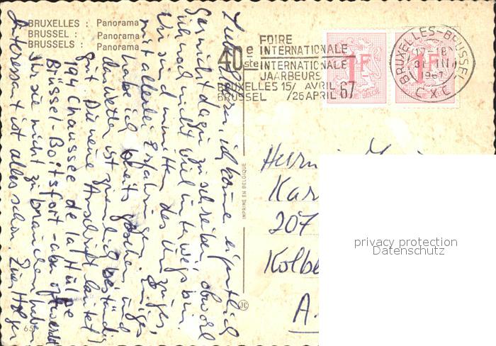 72062619 carte postale Bruxelles Bruessel postalisch gelaufen Erhaltung siehe scans KatCode: 11070021003403