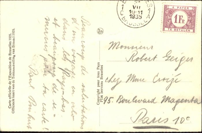 70887755 carte postale Bruxelles Bruessel Exposition Pavillon Catholique postalisch gelaufen KatCode: 11070021003403