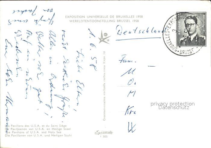 72062618 carte postale Bruxelles Bruessel Exposition Universelle postalisch gelaufen Erhaltung siehe scans KatCode: 11070021003403