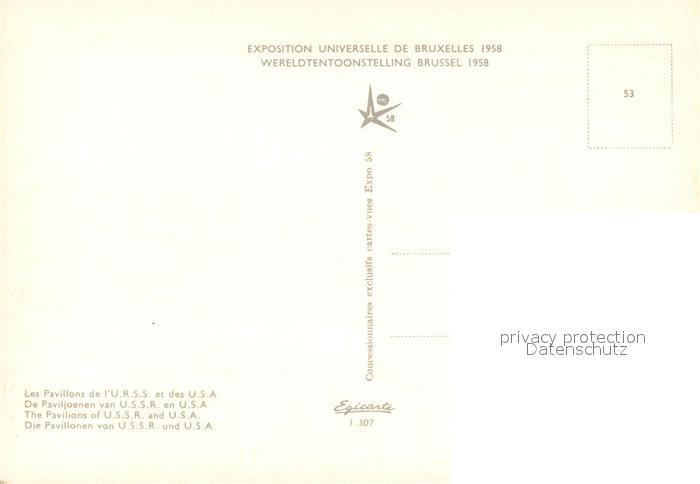 73355955 Bruxelles Bruessel Exposition Universelle Les Pavillons de l’URss et des USA postalisch nicht gelaufen Erhaltung siehe scans [FriedD77] KatCode: 11070021003403