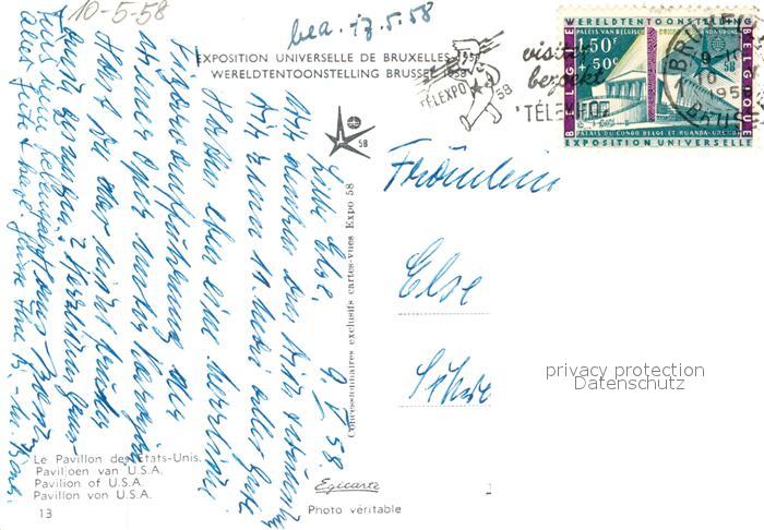 73481010 carte postale Bruxelles Bruessel Exposition Universelle Pavillon des Etats-Unis postalisch gelaufen Erhaltung siehe scans [FriedD77] KatCode: 11070021003403