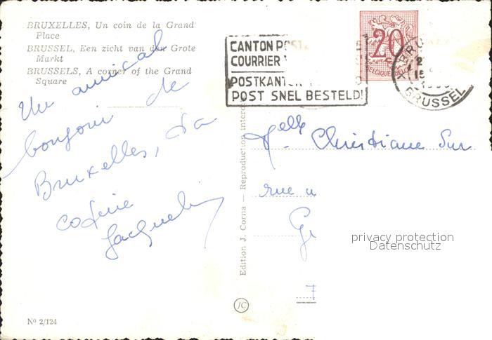 72306255 carte postale Bruxelles Bruessel Gramd ueoeace postalisch gelaufen Erhaltung siehe scans KatCode: 11070021003403