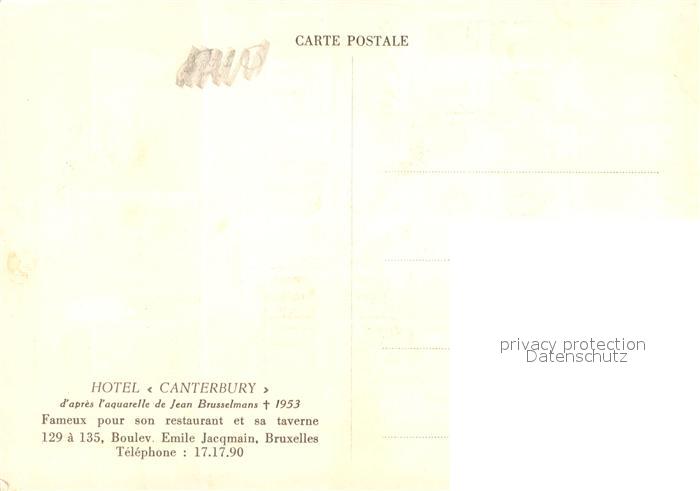 73175825 Bruxelles Bruessel Hotel Canterbury Kuenstlerkarte postalisch nicht gelaufen Erhaltung siehe scans [FriedD77] KatCode: 11070021003403