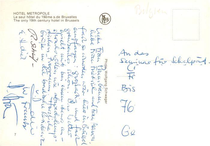 73924384 Bruxelles Bruessel Hotel Metropole Le seul hotel du 19eme sur de Bruxelles postalisch nicht gelaufen Erhaltung siehe scans [WerneD78] KatCode: 11070021003403