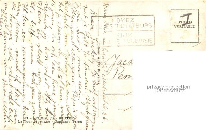 72934247 carte postale Bruxelles Bruessel La Tour Japonaise postalisch gelaufen Erhaltung siehe scans [FriedD77] KatCode: 11070021003403
