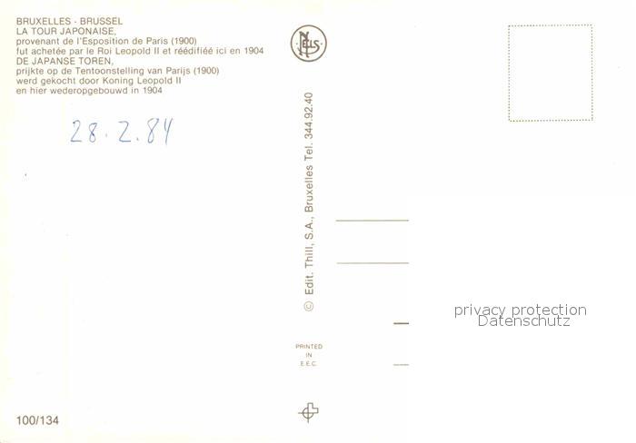 72929033 Bruxelles Bruessel La Tour Japonaise Japanische Turm postalisch nicht gelaufen Erhaltung siehe scans [FriedD77] KatCode: 11070021003403
