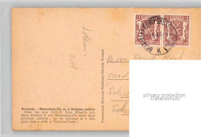 43503112 carte postale Bruxelles Bruessel Manneken Pis as a Belgian soldier postalisch gelaufen Erhaltung siehe scans [WerneD78] KatCode: 11070021003403