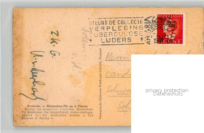 43503111 carte postale Bruxelles Bruessel Manneken Pis as a Clown postalisch gelaufen Erhaltung siehe scans [WerneD78] KatCode: 11070021003403