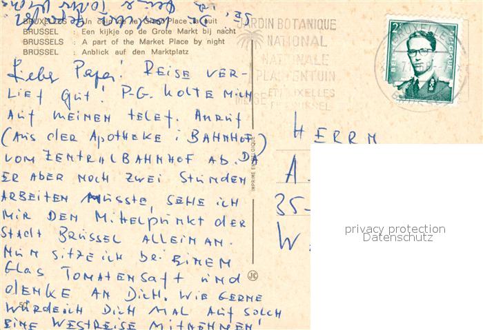 73239138 carte postale Bruxelles Bruessel Marktplatz postalisch gelaufen Erhaltung siehe scans [NatalD47] KatCode: 11070021003403