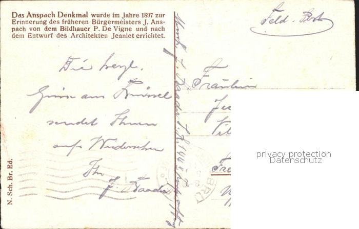 72026216 carte postale Bruxelles Bruessel Monument Anspach postalisch gelaufen Feldpost Erhaltung siehe scans KatCode: 11070021003403