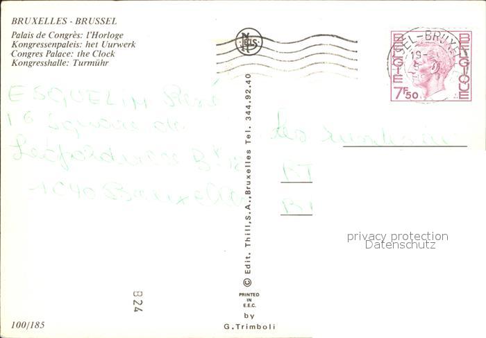 72286021 carte postale Bruxelles Bruessel Palais de Congres Horloge Kongresshalle Turmuhr postalisch gelaufen Erhaltung siehe scans KatCode: 11070021003403