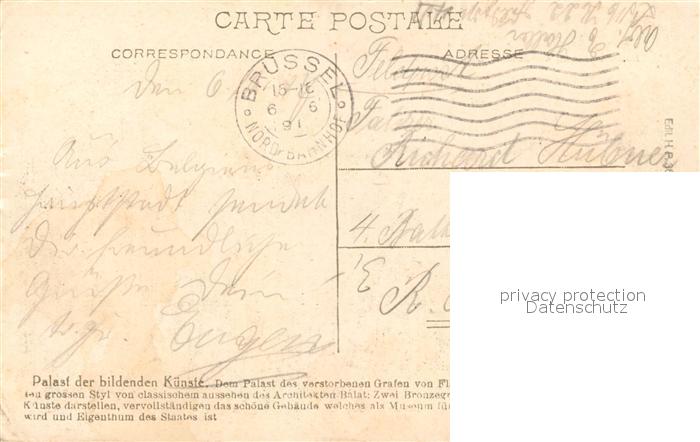 73336066 carte postale Bruxelles Bruessel Palais des Beaux Arts postalisch gelaufen Feldpost Erhaltung siehe scans [LiesaD40] KatCode: 11070021003403