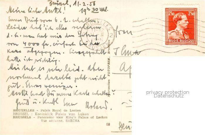 73792320 carte postale Bruxelles Bruessel Palais Royal de Laeken postalisch gelaufen Erhaltung siehe scans [WerneD78] KatCode: 11070021003403