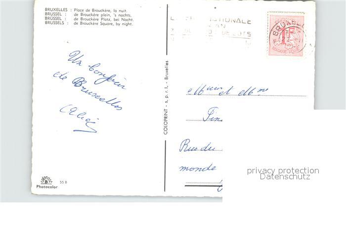 72582142 carte postale Bruxelles Bruessel Place de Brouckere la nuit postalisch gelaufen Erhaltung siehe scans [FriedD77] KatCode: 11070021003403