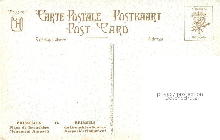 73340642 Bruxelles Bruessel Place de Brouckère Monument Anspach Aquarel Peinture Kuenstlerkarte postalisch nicht gelaufen Erhaltung siehe scans [FriedD77] KatCode: 11070021003403