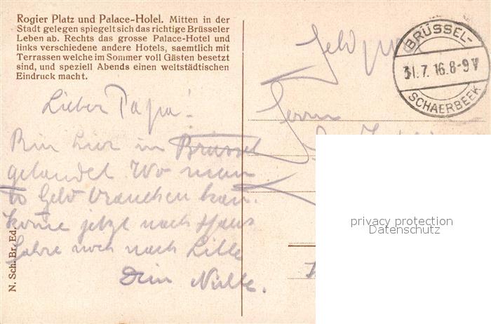 73336387 carte postale Bruxelles Bruessel Place Rogier et Palace Hotel Strassenbahnen postalisch gelaufen Feldpost Erhaltung siehe scans [LiesaD40] KatCode: 11070021003403