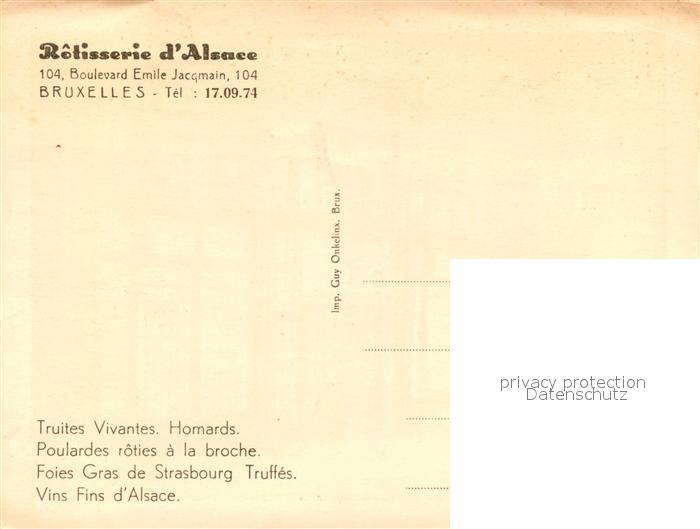 43500864 Bruxelles Bruessel Rotisserie d Alsace postalisch nicht gelaufen Erhaltung siehe scans [WerneD78] KatCode: 11070021003403