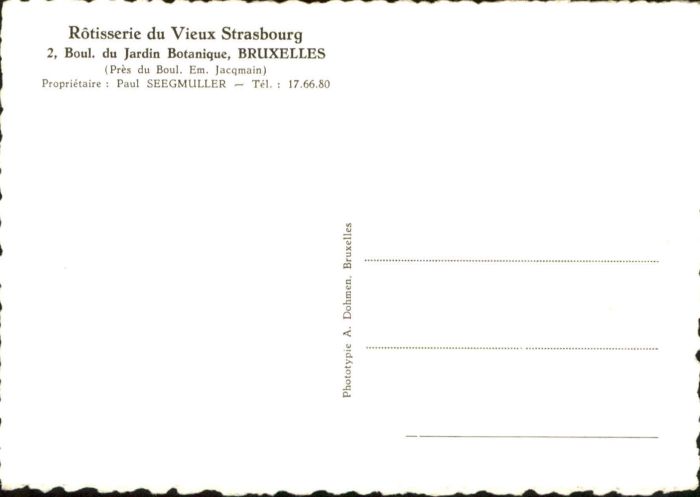 10821185 Bruxelles Bruessel Rotisserie du Vieux Strasbourg Storch KatCode 11070021003403