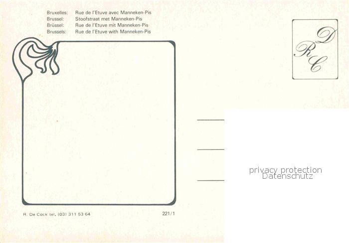 72623557 Bruxelles Bruessel Rue de Etuve avec Manneken-Pis postalisch nicht gelaufen Erhaltung siehe scans [NatalD47] KatCode: 11070021003403