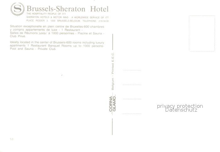 73024438 Bruxelles Bruessel Sheraton Hotel postalisch nicht gelaufen Erhaltung siehe scans [PaolaD17] KatCode: 11070021003403