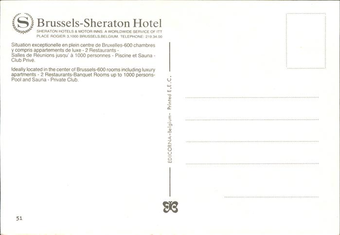 71475254 Bruxelles Bruessel Sheraton Hotel postalisch nicht gelaufen Erhaltung siehe scans KatCode: 11070021003403