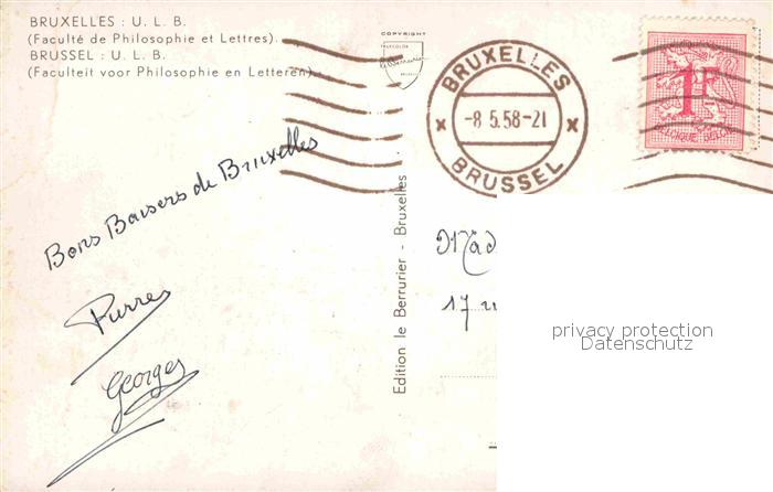 72756378 carte postale Bruxelles Bruessel Universitaet Philosophie postalisch gelaufen Erhaltung siehe scans [KathaD81] KatCode: 11070021003403