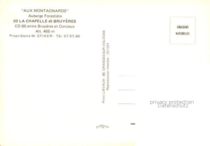13235321 Bruyeres Vosges Chapelle dt Bruyeres postalisch nicht gelaufen Erhaltung siehe scans [LiesaD40] KatCode: 11170088188078