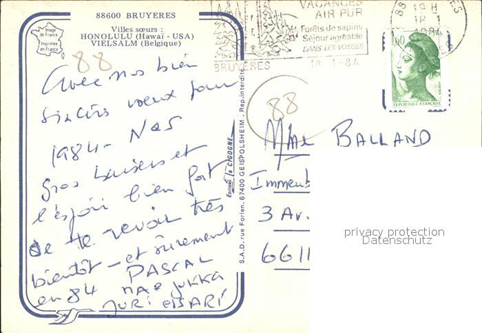 12002173 carte postale Bruyeres Vosges postalisch gelaufen KatCode: 11170088188078