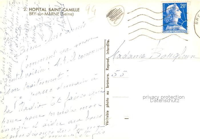 13279219 carte postale Bry-sur-Marne Hopital Saint Camille postalisch gelaufen Erhaltung siehe scans [WerneD78] KatCode: 11170094294015