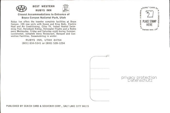 72231762 Bryce Canyon National Park Best Western Rubys Inn postalisch nicht gelaufen Erhaltung siehe scans KatCode: 14140470000000