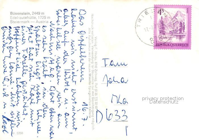 73592493 alte Postkarte B?senstein Edelrauterh?tte postalisch gelaufen Erhaltung siehe scans [LiesaD40] KatCode: