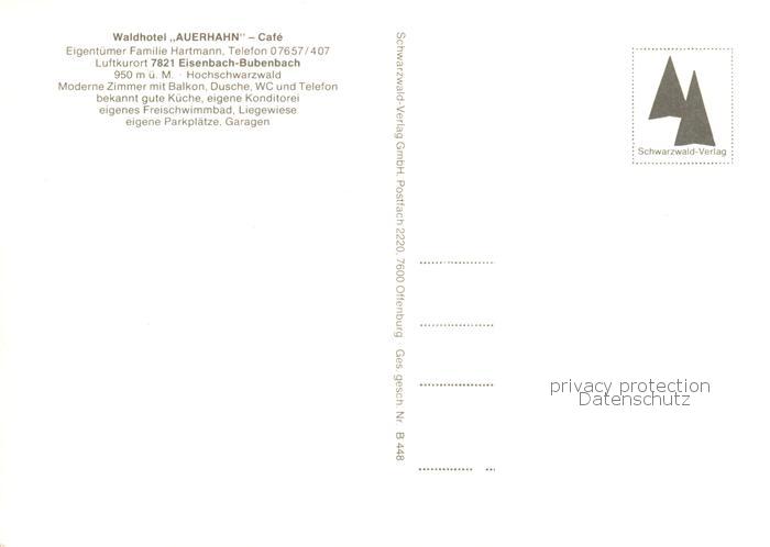 73844774 Bubenbach Eisenbach Waldhotel Auerhahn Cafe postalisch nicht gelaufen Erhaltung siehe scans [WerneD78] Wern Katcode 11110008315031