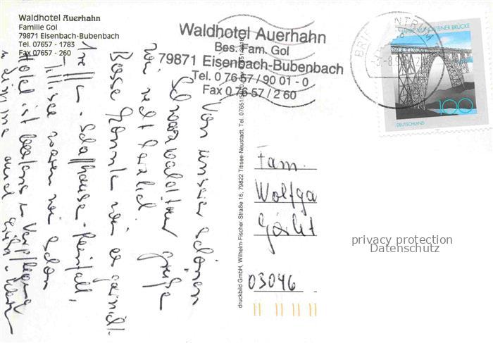 74023038 alte Postkarte Bubenbach Eisenbach Waldhotel Auerhahn postalisch gelaufen Erhaltung siehe scans [FriedD77] KatCode: 11110008315031
