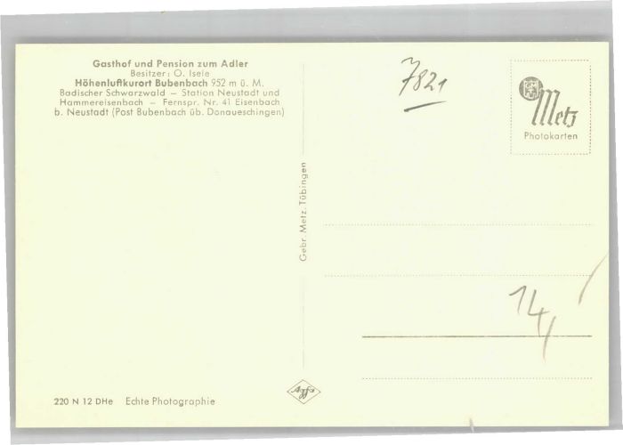 40728773 Bubenbach Gasthof Pension zum Adler KatCode 11110008315031
