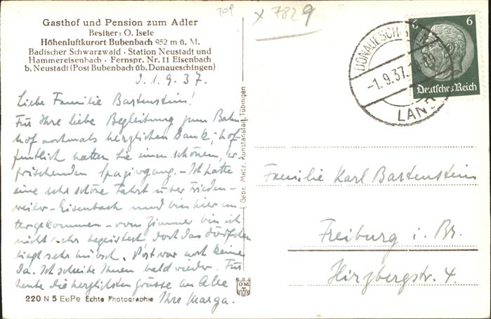 41394457 Bubenbach Gasthof Pension Zum Adler postalisch gelaufen gute Erhaltung Alte Ansichtskarte Postkarte alte Postkarte hz_L Katcode 11110008315031