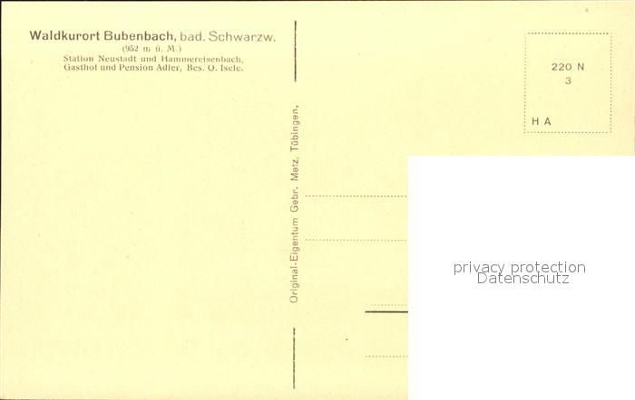 41786635 Bubenbach Gasthof Pension zum Adler Waldkurort Schwarzwald postalisch nicht gelaufen KatCode: 11110008315031