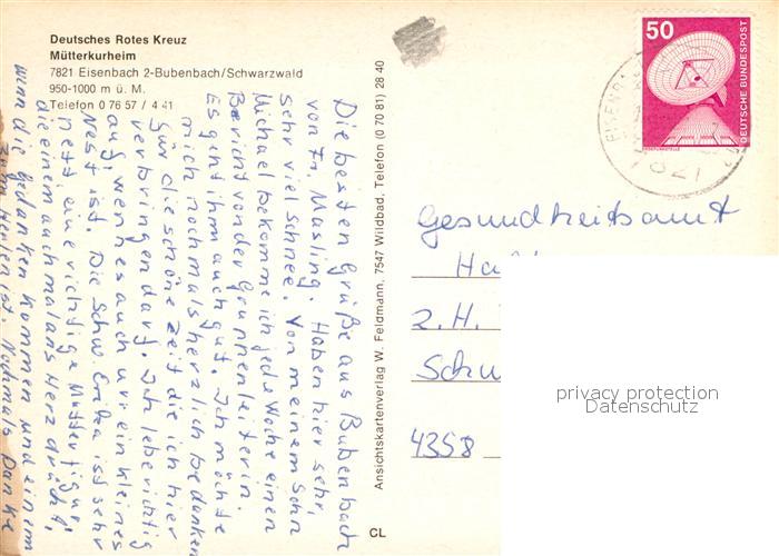 72960865 alte Postkarte Bubenbach Muetterkurheim postalisch gelaufen Erhaltung siehe scans [LiesaD40] KatCode: 11110008315031