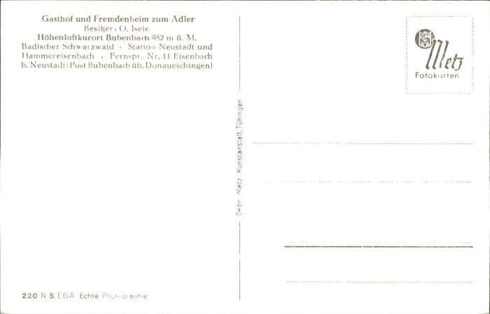 40805452 Bubenbach Schwarzwald Neustadt Hammereisenbach Eisenbach Gasthof Pension zum Adler postalisch nicht gelaufen Alte Ansichtskarte Postkarte Katcode 11110008315031