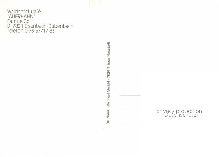 72617479 Bubenbach Waldhotel Auerhahn Gastraum Terrasse postalisch nicht gelaufen Erhaltung siehe scans [WerneD78] KatCode: 11110008315031