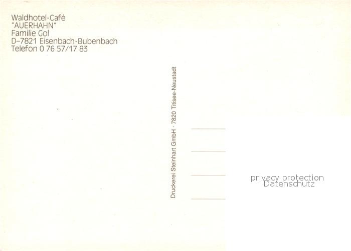 73087764 Bubenbach Waldhotel Cafe Auerhahn postalisch nicht gelaufen Erhaltung siehe scans [KathaD81] KatCode: 11110008315031
