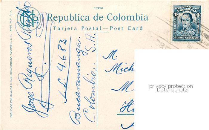 73821668 old postcard Bucaramanga Colombia Carrera postalisch gelaufen Erhaltung siehe scans [WerneD78] KatCode: 17100