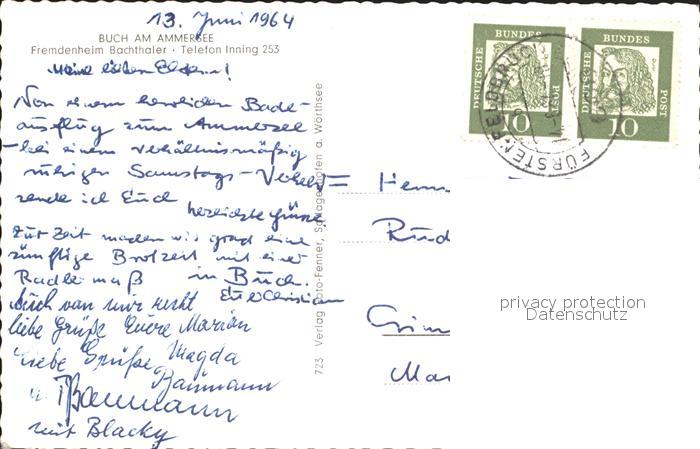 72298058 alte Postkarte Buch Ammersee Fremdenheim Bachthaler postalisch gelaufen Erhaltung siehe scans KatCode: 11110009188126