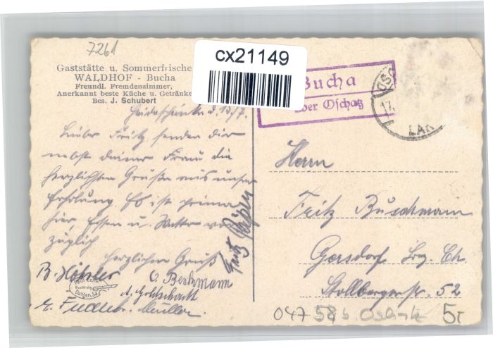 30740541 alte Postkarte Bucha Dahlen Waldhof Gaststaette postalisch gelaufen KatCode: 11110014389080