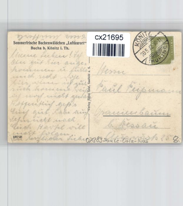 30740413 alte Postkarte Bucha Unterwellenborn Sommerfrische Buchenwaeldchen postalisch gelaufen KatCode: 11110016073111