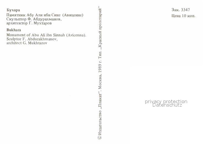 Buchara Monument of Abu Ali ibn Sinnah postalisch nicht gelaufen Erhaltung siehe scans [NatalD47]