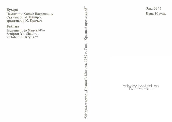 Buchara Monument to Nasr-ad-Din postalisch nicht gelaufen Erhaltung siehe scans [NatalD47]