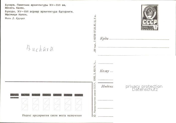 Buchara Moschee Kaljan postalisch nicht gelaufen Ganzsache (eingedruckte Briefmarke) Erhaltung siehe scans