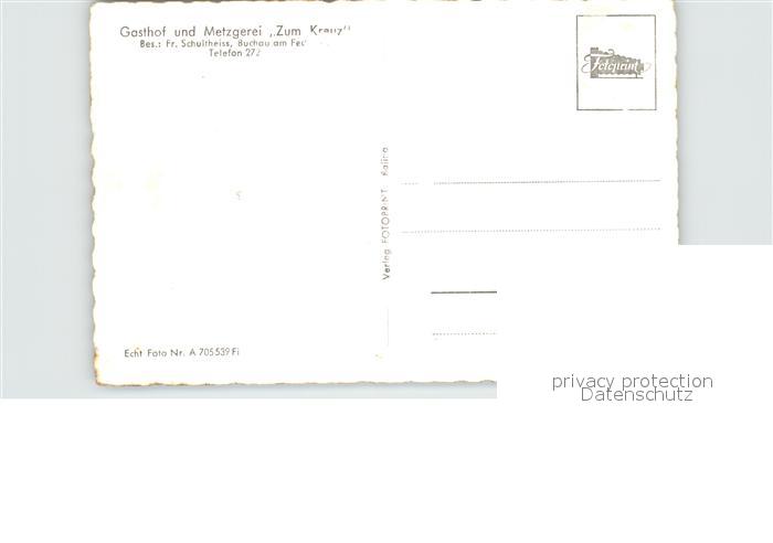 32571890 Buchau Federsee Bad Gasthof Metzgerei Zum Kreuz postalisch nicht gelaufen Erhaltung siehe scans [WerneD78] KatCode: 11110008426013